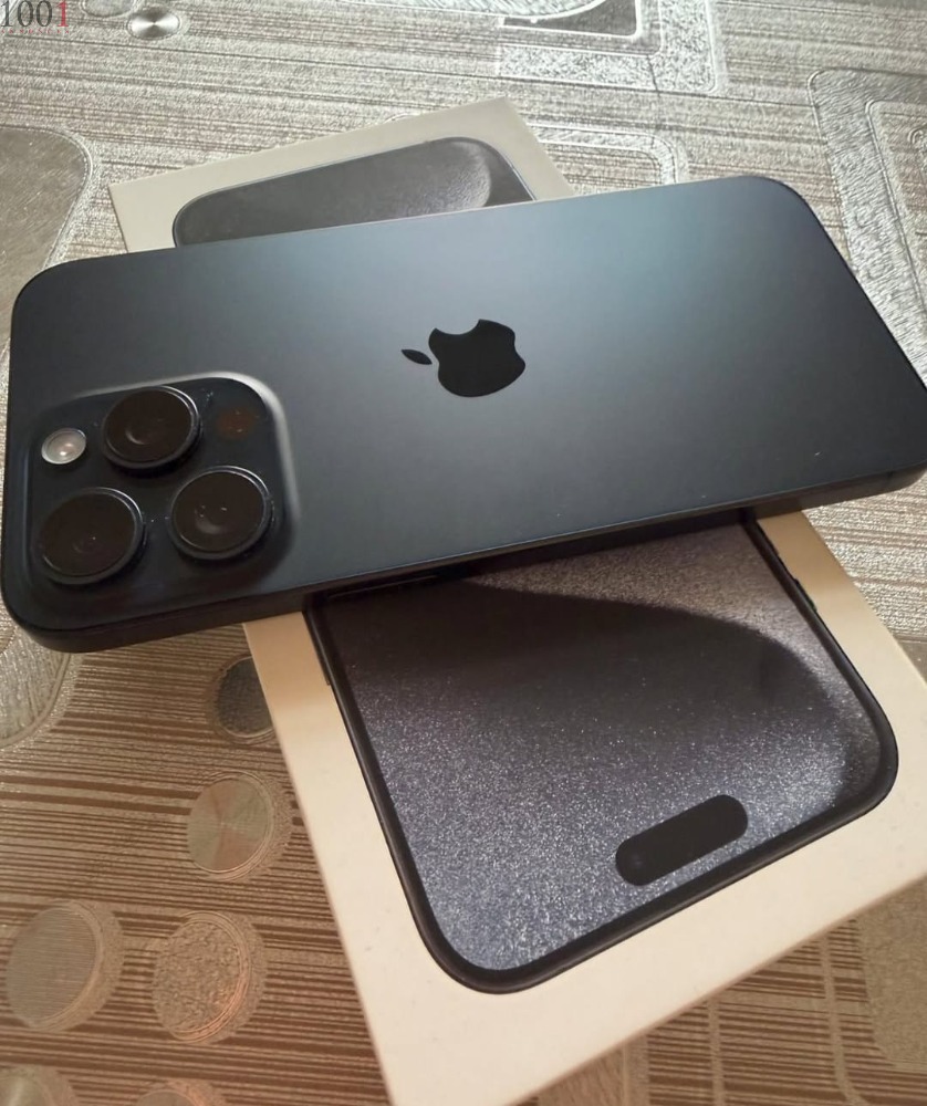 Je vends un iPhone 15 Pro Max noir de 256 Go.