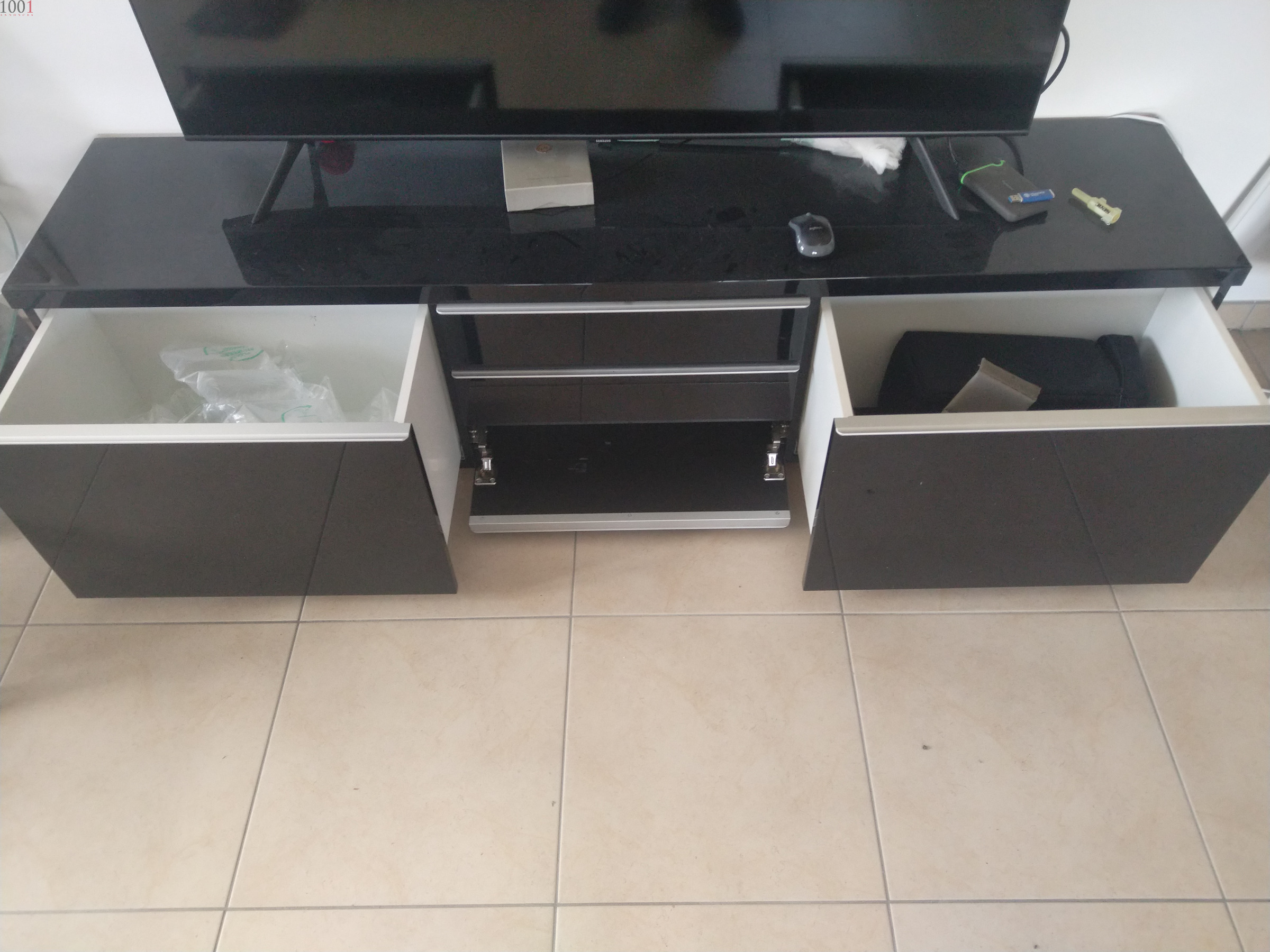 Vends meuble TV noir avec 5 tiroirs. Tres bon etat.