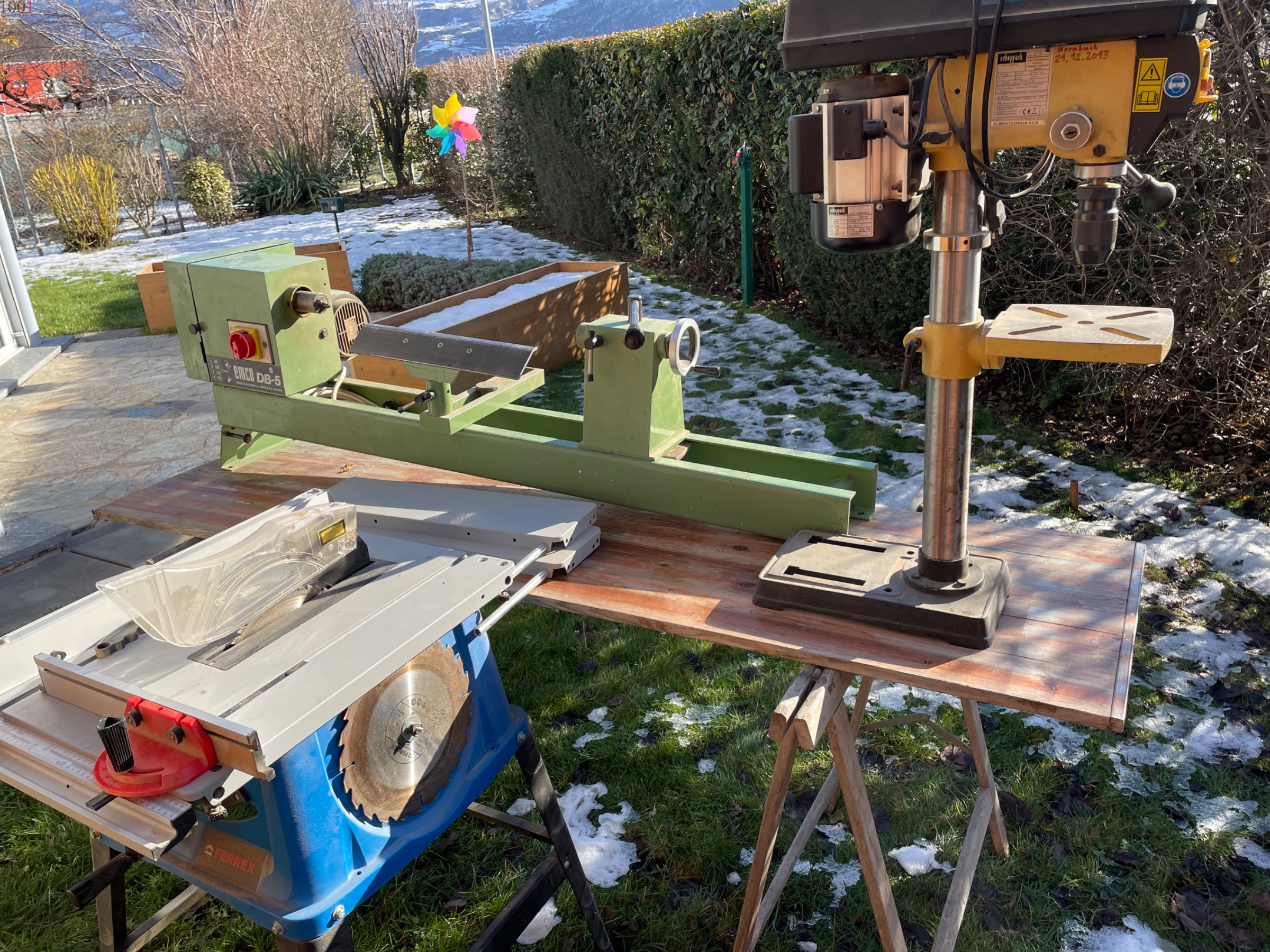 Pour à bois, perceuse à colonne, circulaire de table diverses machines portatives te outillage