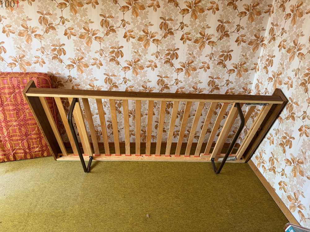 Lit d'occasion 90 x 205 cm , idéal pour une chambre d'amis ou un premier appartement. Structure solide en bois, matelas confortable 89 x 192 cm avec motifs rétro. Quelques signes d'usure, mais en bon état général. Parfait pour un étudiant ou une personne à la recherche d'un lit économique et fonctionnel. Dimensions standards. À saisir rapidement! Lit vintage en bois!