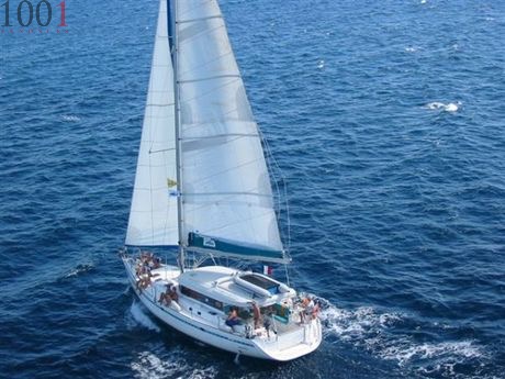 Spacieux : 4 cabines doubles + 2 SDB + four, frigo 200L, frigoboat, éolienne, réservoir d'eau 1000 L, vaste plage arrière avec un accès direct pour la baignade. Circulation aisée des espaces intérieurs et extérieurs.