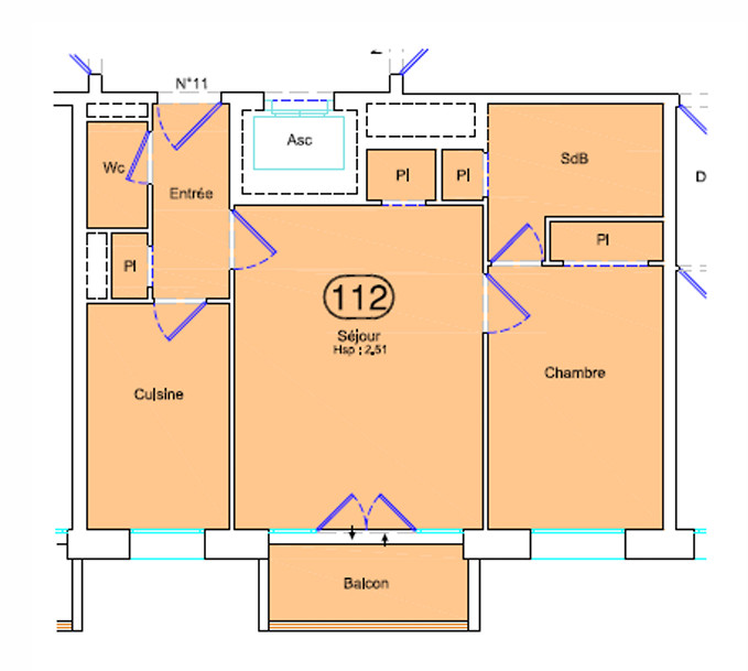 Il se compose d’une entrée, d’un grand séjour, d’une cuisine séparée, 1 chambre , 1 balcon, 1 salle de bain