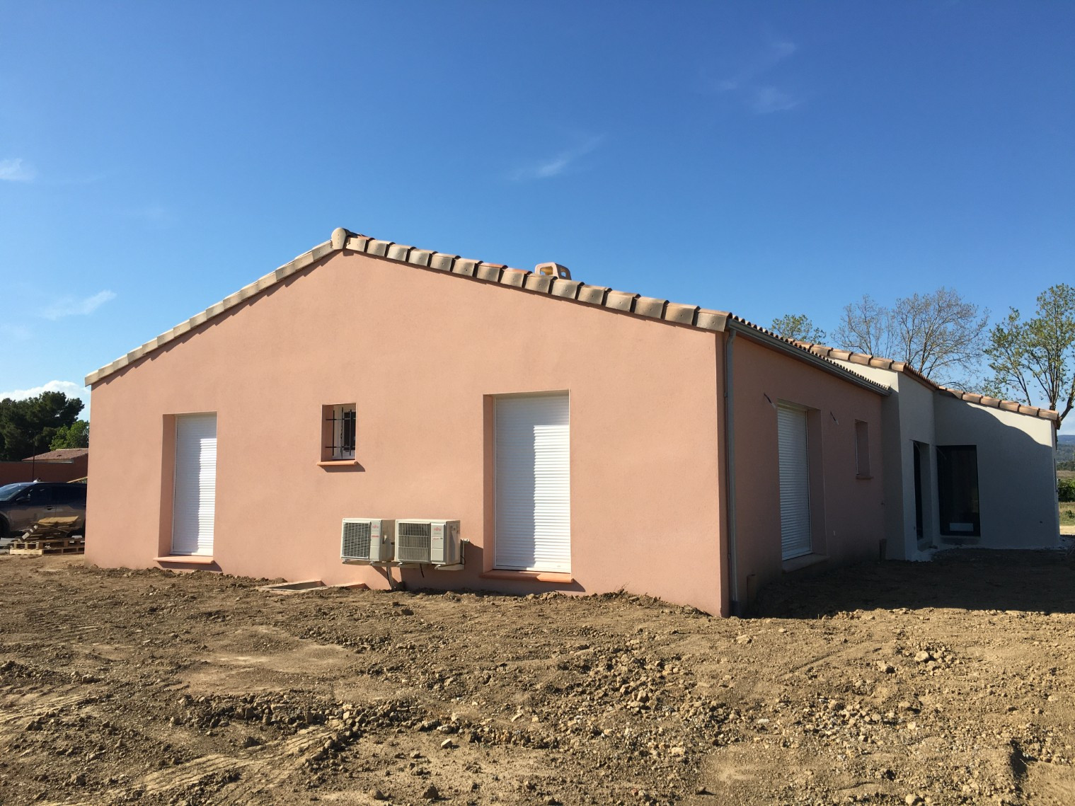 UNE VILLA NEUVE plain pied avec 3 CHAMBRES avec placards intégrés, volets roulants électriques, CLIMATISATION REVERSIBLE et grand séjour.