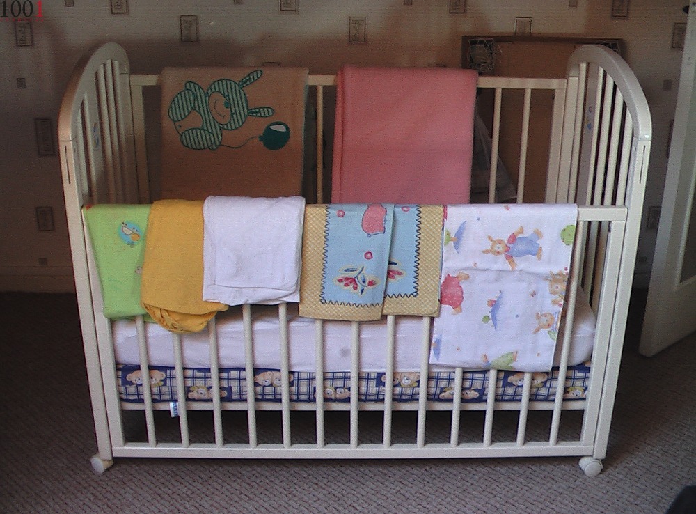 lit bébé 60x120cm blanc coulissant sur roulettes état