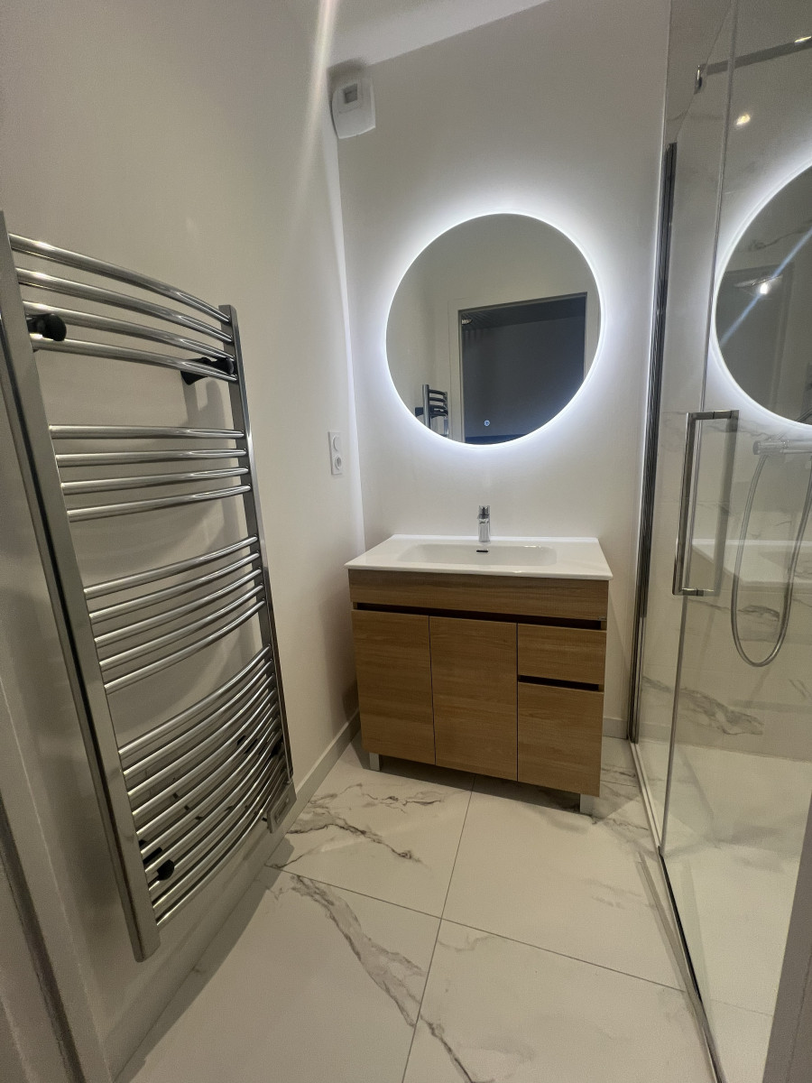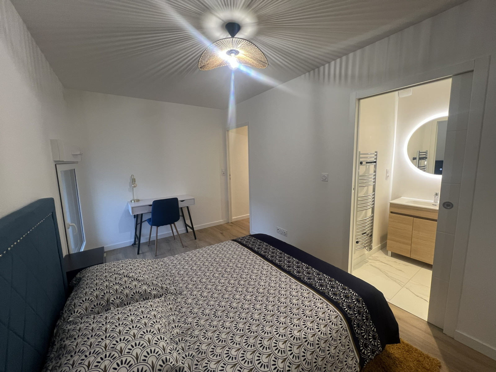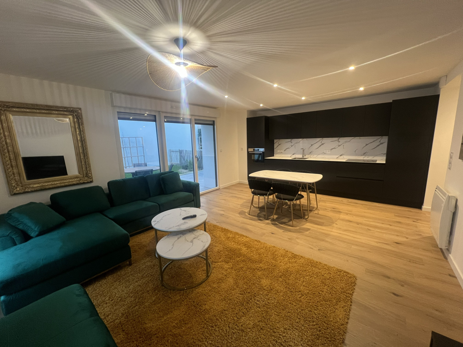 Cet appartement de 57 m², rénové en 2023, comprend une pièce de vie spacieuse et lumineuse, une chambre, une salle de bain, et un WC. Il dispose d'une terrasse et d'un jardin privé, parfaits pour profiter des journées ensoleillées.