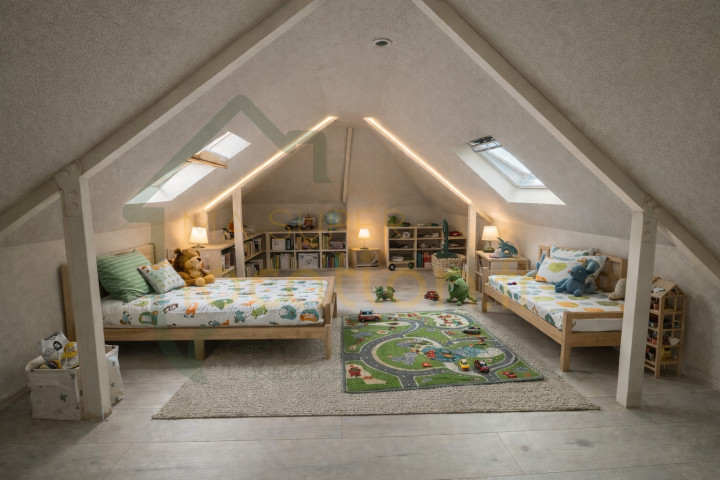 À l'étage, un grenier aménagé pouvant servir de chambre.