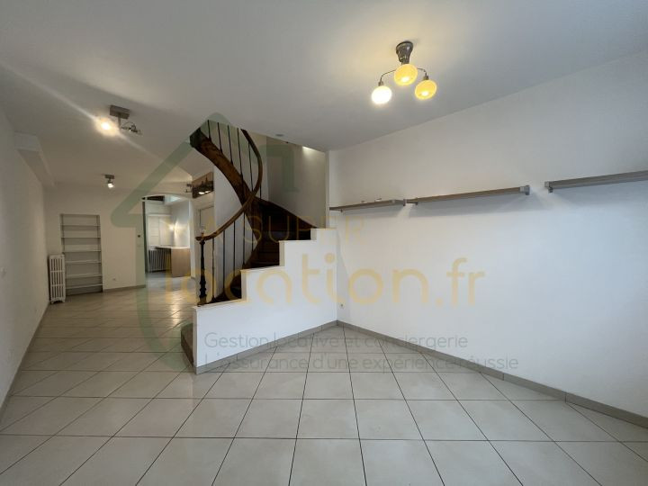 Il se compose au rez-de-chaussée d'une grande pièce de vie salon/salle à manger de 28m2 avec volets roulants électrique, une cuisine équipée (four, plaque, hotte et lave vaisselle) et WC individuel.