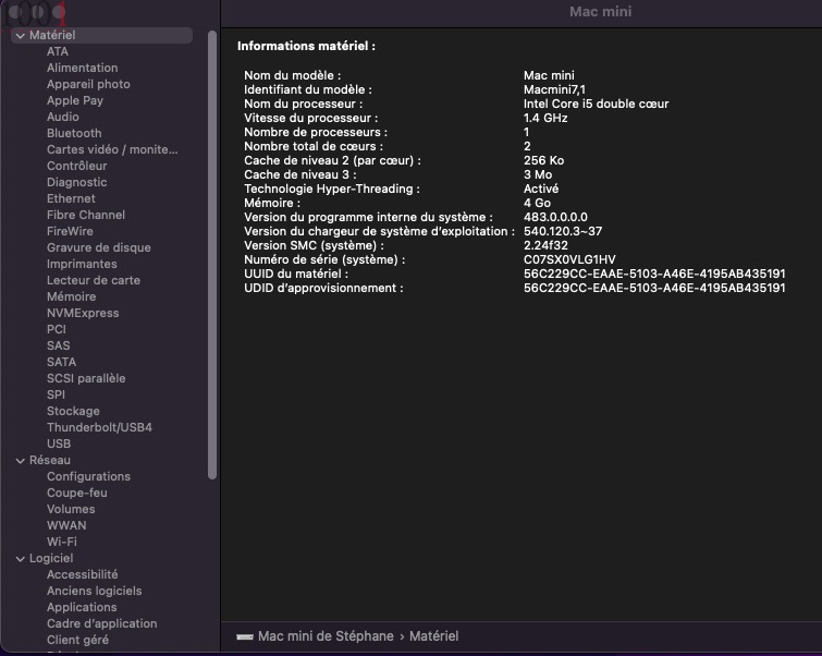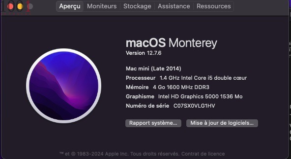 Apple Mac Mini MONTERREY Intel Core i5 GHz/4Go/500 Go HDDR3 /Intel HD Graphics 5000 – Argent Processeur 1,4 Intel Core i5 double coeur Mémoire 4 Go 1600 MHz DDR3 Graphics 5000 1536 Mo PAS DE PHOTO SUPPLEMENTAIRE