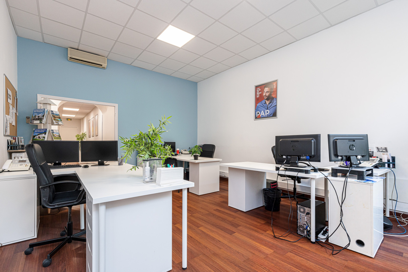 Configuration fonctionnelle permettant l’aménagement de plusieurs bureaux, salle d’attente et espace accueil selon vos besoins.