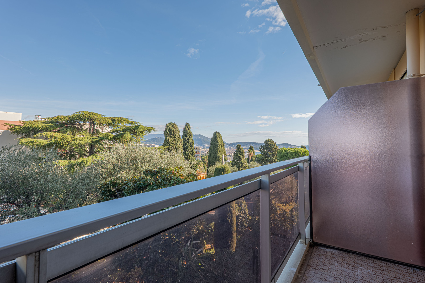 NICE / FABRON - En 2ème étage d'une résidence de standing, cet appartement de type studio comprend un hall d'entrée avec placard, une salle de douche avec W.C. et meuble vasque, un séjour avec coin-cuisine équipé (plaque de cuisson, hotte aspirante, évier, lave-linge et micro-ondes) et un balcon sans vis-à-vis avec vue mer.