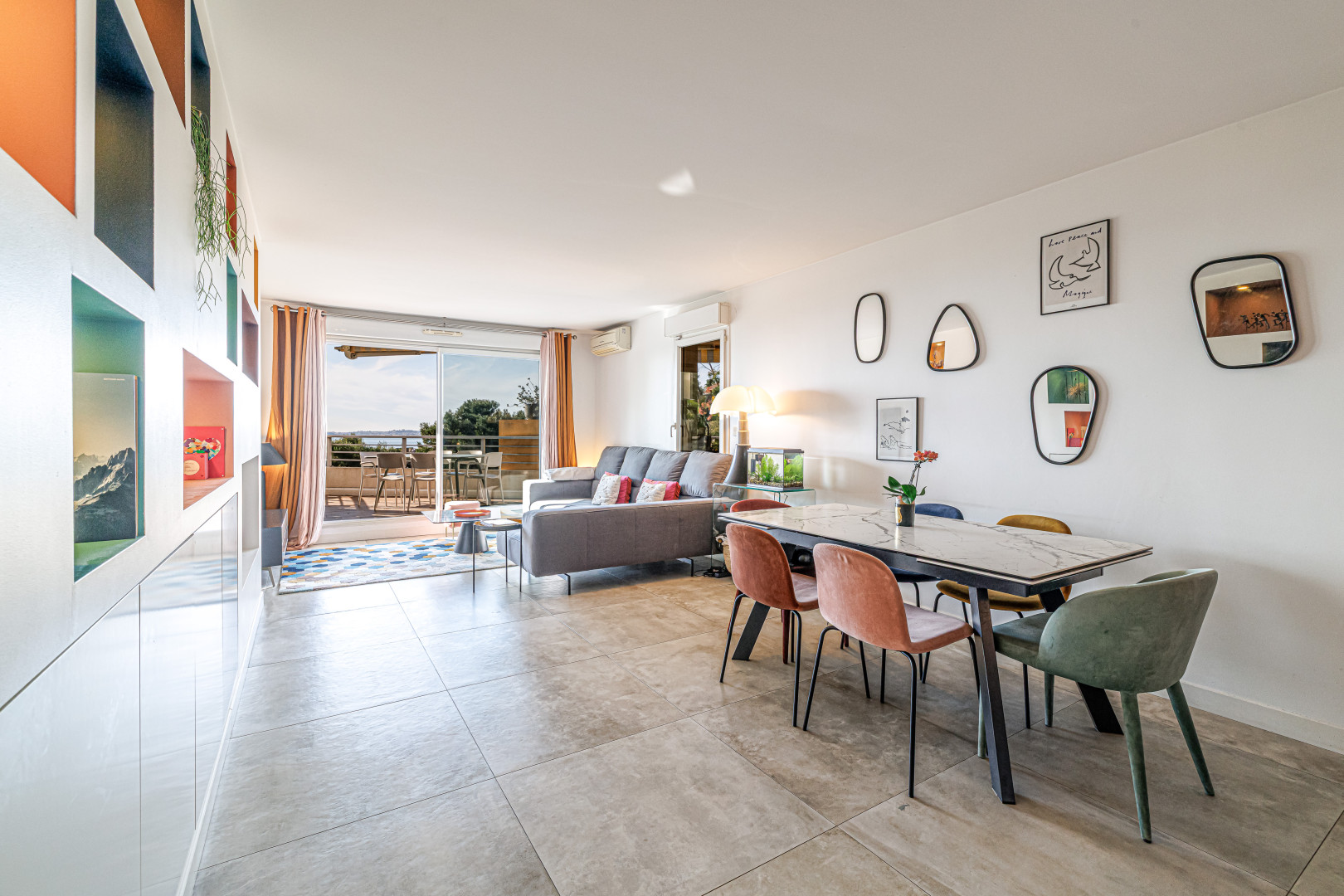 L’espace de vie, spacieux et lumineux, s’ouvre sur une terrasse de 30 m² idéalement exposée avec une vue mer dégagée, parfaite pour profiter de chaque saison.