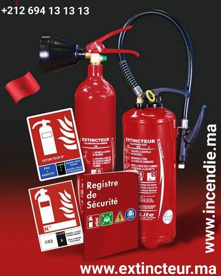 A rabat Afrique solution securite propose l'installation d'extincteurs neufs (poudre ABC, CO2, eau) ainsi que des services de maintenance préventive et de recharge.