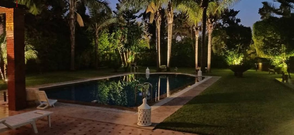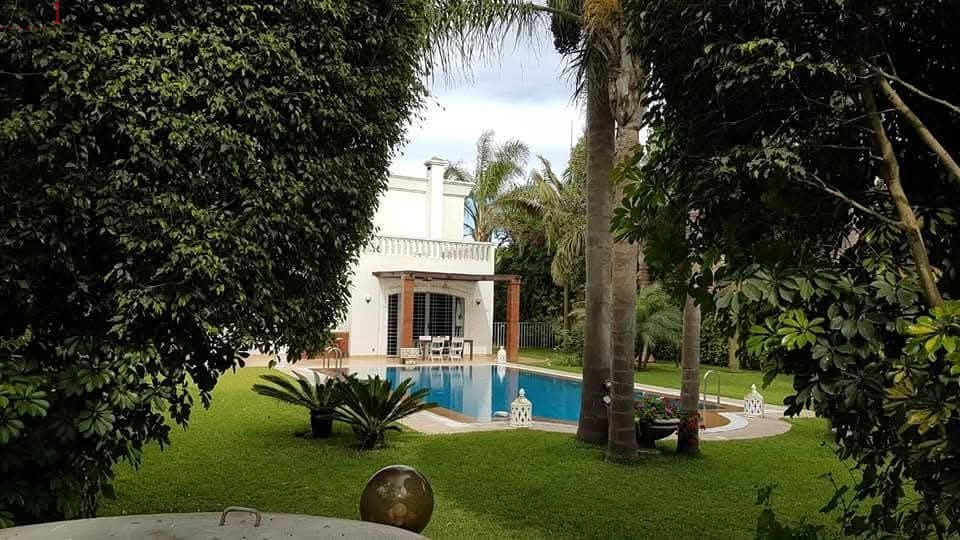 Kamalimmobilier vous souhaite la bienvenue et vous propose à vendre à El Jadida en plein centre du quartier Californie,quartier résidentiel propre et calme à proximité de la route côtière reliant El Jadida-Casablanca et la plage une villa coup de coeur spacieuse faite avec goût de quatre façades et de deux niveaux, totalement clôturée bâtie sur un terrain de 1115 métres carrés plus un grand jardin arboré,un puit,un garage pour deux voitures et une piscine de 11 métres de longueur sur 5 métres de largeur.