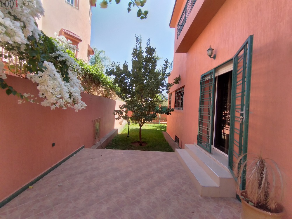 Rez-de-chaussée : grand salon marocain, salon européen avec cheminée, séjour, cuisine donnant sur une grande cour, salle d'eau invités