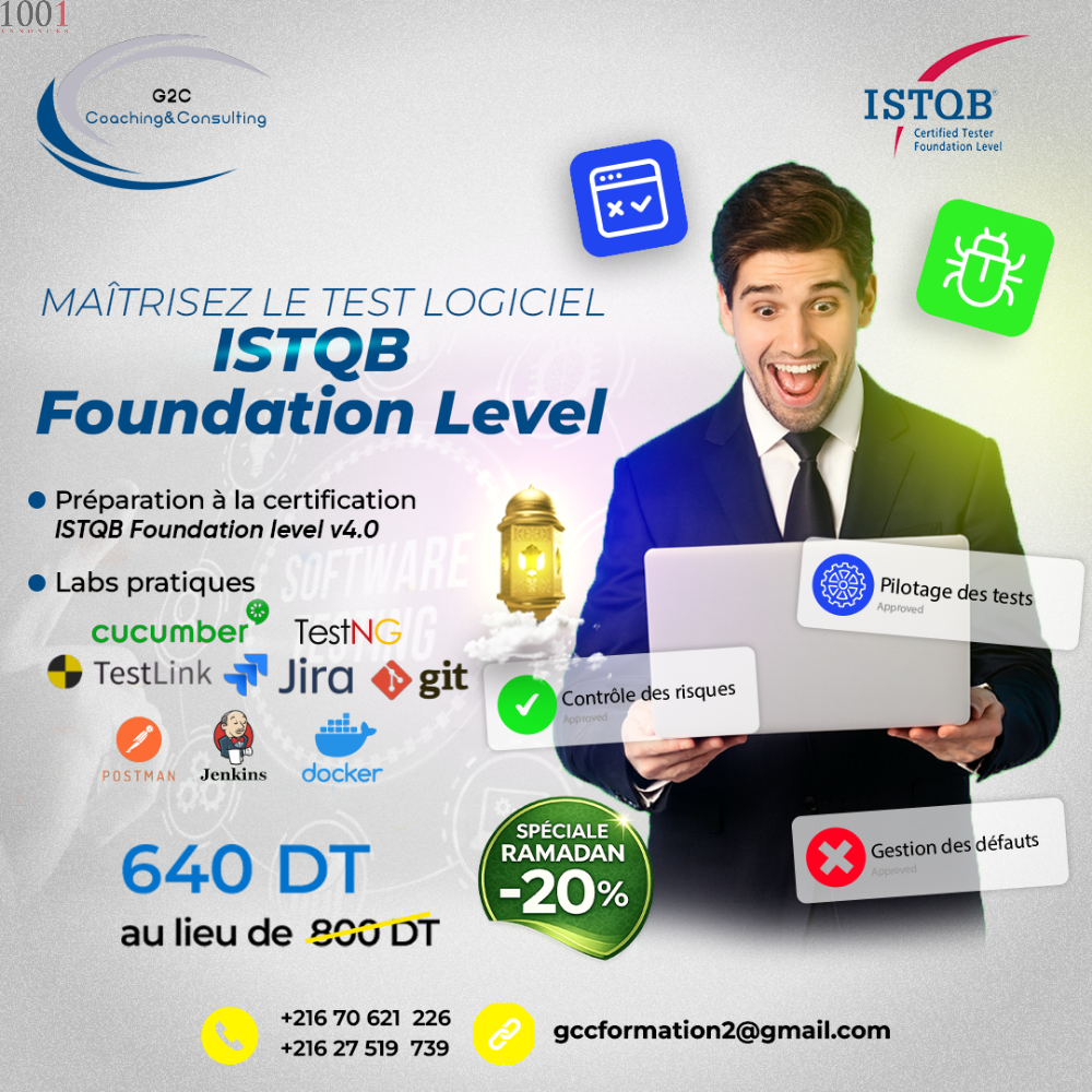 #ISTQB #QA #TestLogiciel #softwaretesting #formationtunisie #G2CExpertise #certification #testautomation #selenium