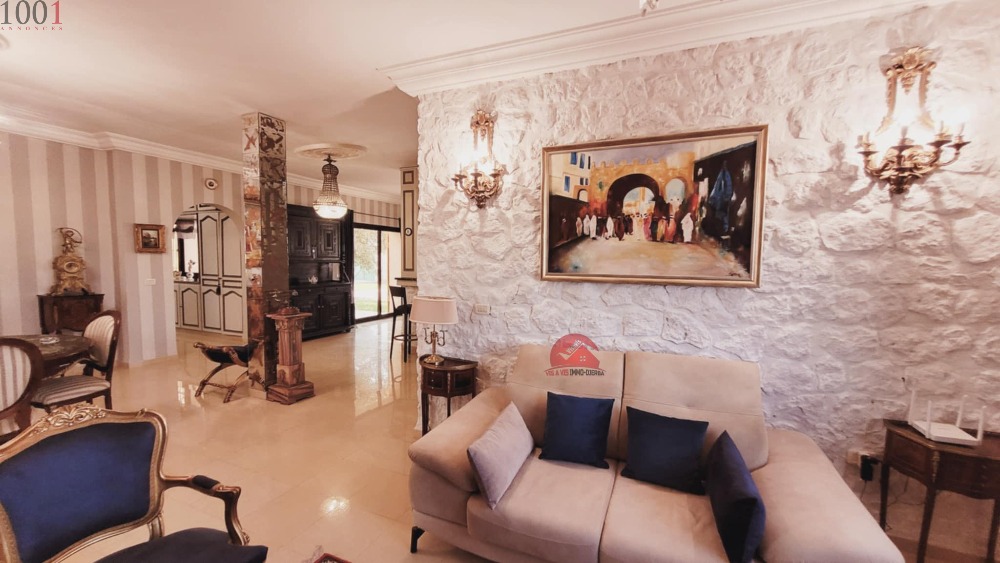 La maison couvre 350 m² et se compose en rez-de-chaussée d'une entrée, salon, salle à manger, bureau, cuisine, WC et une partie nuit, où les 3 chambres et une belle salle de bain. Une décoration originale caractérisant chacune des pièces. une 4 ème chambre est à l'étage.