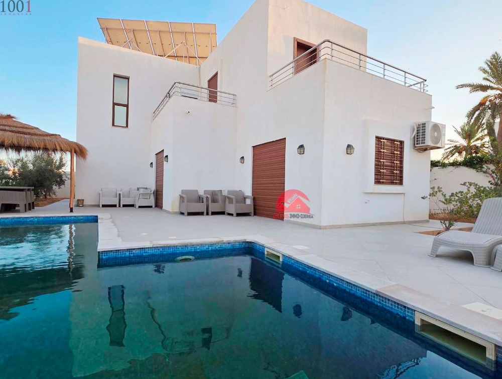 Située en zone urbaine à Houmt souk, une villa spacieuse avec un rez-de-chaussé où on trouve un espace salon / salle à manger, lumineux, une cuisine séparée, 1 chambre et une salle d'eau.